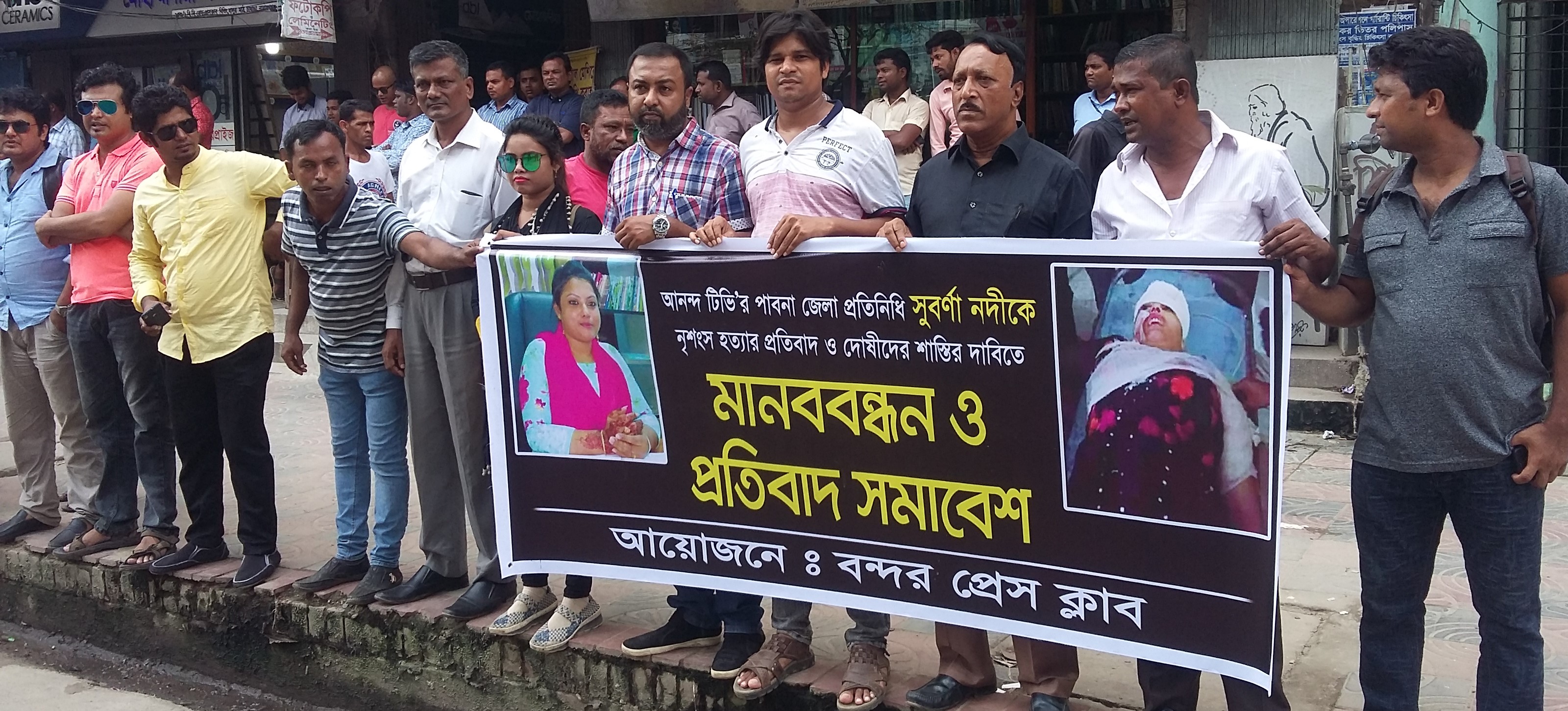সাংবাদিক নদীর হত্যাকারীদের বিচারের দাবীতে উত্তাল দেশ নারায়নগঞ্জে সাংবাদিকদের মানববন্ধন