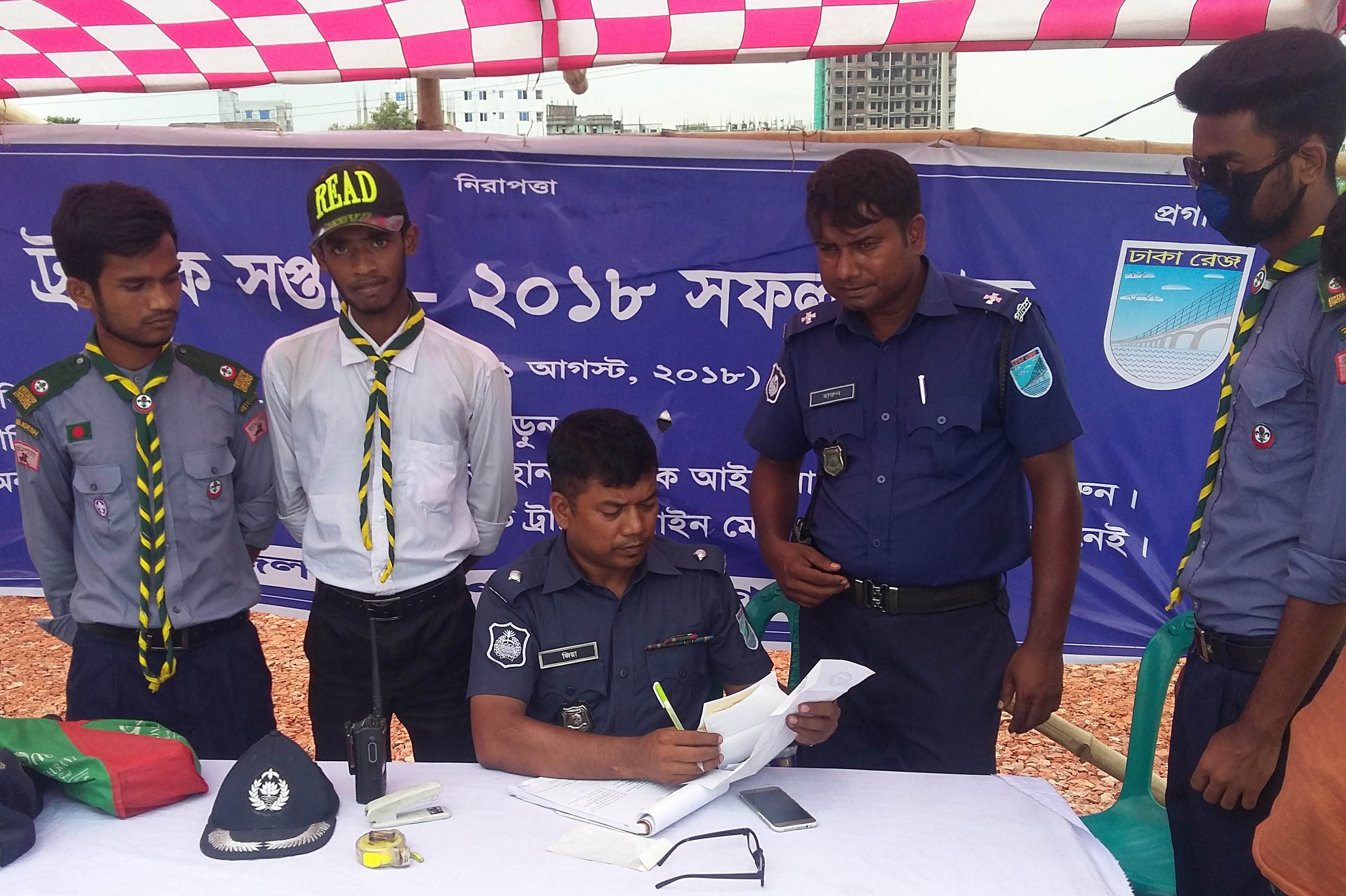 “ট্রাফিক সপ্তাহ”র শেষ দিনে বৈধ গাড়ী চালকদের পুলিশের ফুলের শুভেচ্ছা