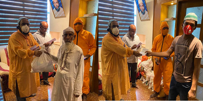 থেমে নেই সাইনবোর্ডে সাবেক ওলামালীগের সভাপতি কাঁচপুরীর ত্রাণ বিতরণ